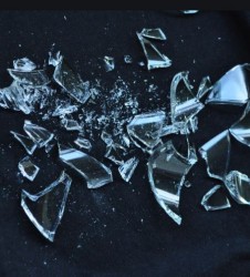 shatter - To break or cause to break suddenly and violently into pieces