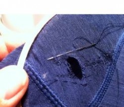 snag - Catch or tear a piece of material on something sticking out