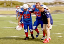 limp - Walk with difficulty, typically because of a damaged or stiff leg or foot