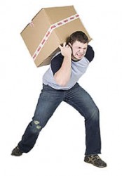 schlep - To haul or carry something heavy, often in an way that is awkward and takes a lot of energy.