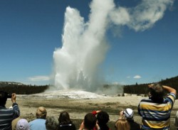 spew - To expel large quantities of something rapidly and forcibly