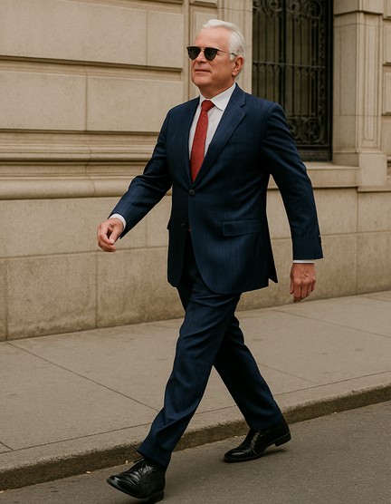 swagger - Walk or behave in a very confident and typically arrogant or aggressive way
