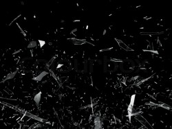 shatter - To break or cause to break suddenly and violently into pieces